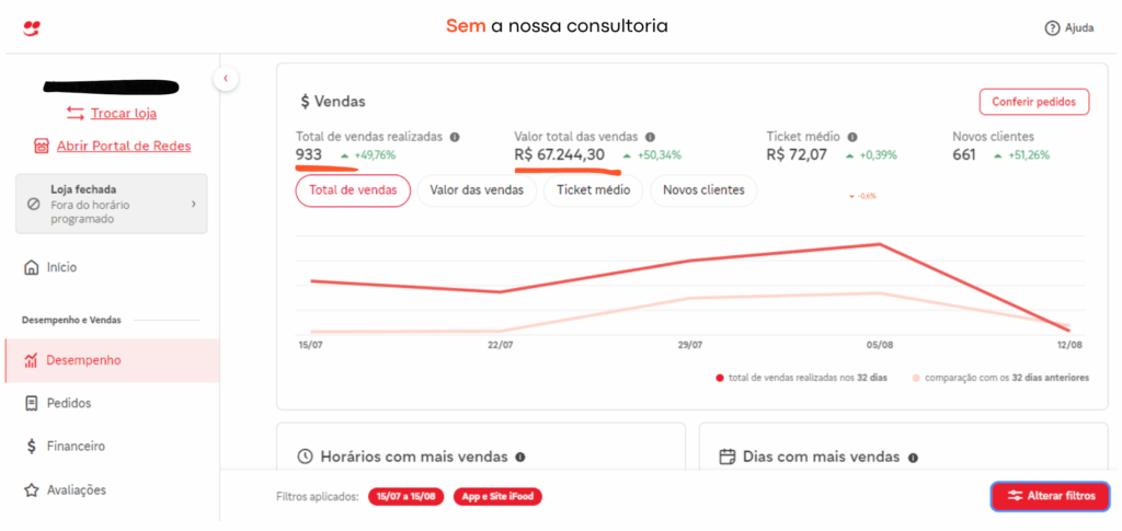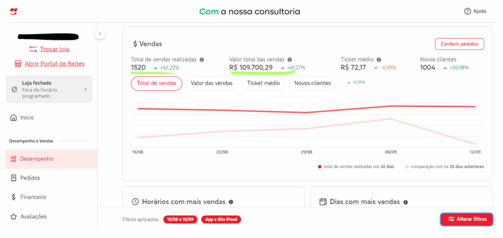 Durante a consultoria, implementamos ferramentas para impulsionar as vendas diretas, incluindo tráfego pago, SEO (otimização por palavras-chave), estratégias de algoritmos, funis de vendas, cardápios digitais e táticas para aumentar o ticket médio e a conversão em canais diretos e redes sociais.